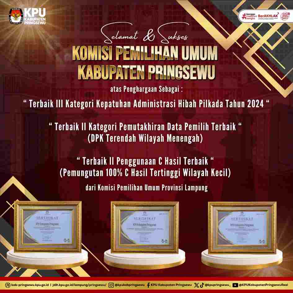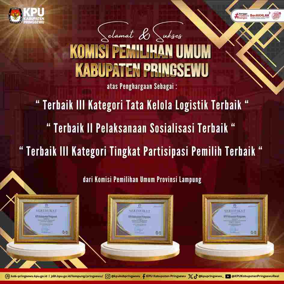 Semoga ke depannya, KPU Kabupaten Pringsewu terus meningkatkan kinerja dan meraih prestasi yang lebih gemilang demi suksesnya demokrasi di daerah.
