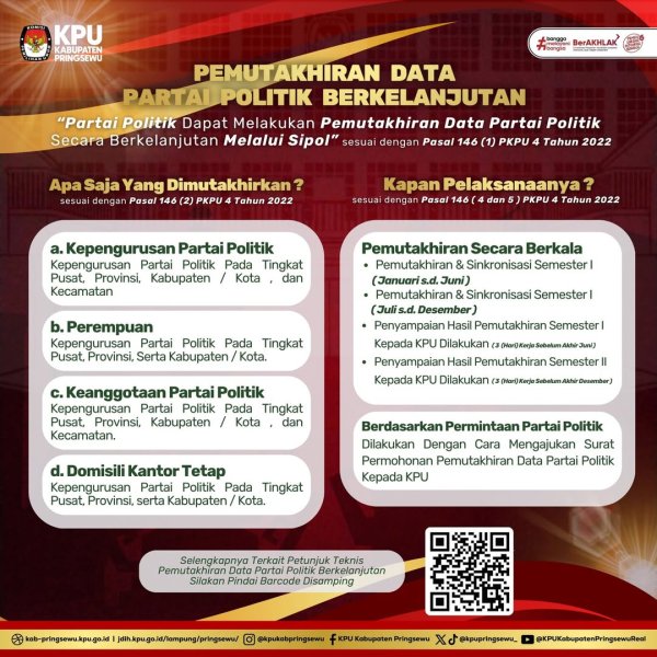 Kegiatan ini bertujuan untuk memperkuat implementasi SPIP sebagai upaya penguatan akuntabilitas dan tata kelola lembaga yang baik di lingkungan KPU se-Provinsi Lampung. Hadir dalam kegiatan ini, Ketua KPU Pringsewu Dewi Eliyasari, Ketua Divisi Hukum dan Pengawasan Wendy Apriyanto, Sekretaris KPU Pringsewu Ari Mulando, Kasubbag Teknis Penyelenggaraan dan Hukum Untung Alvindra, Operator SPIP Alice Alma Mariana. Dengan semangat transparansi dan integritas, KPU Pringsewu berkomitmen mendukung penguatan pengendalian intern demi terciptanya tata kelola lembaga yang profesional dan berintegritas.
