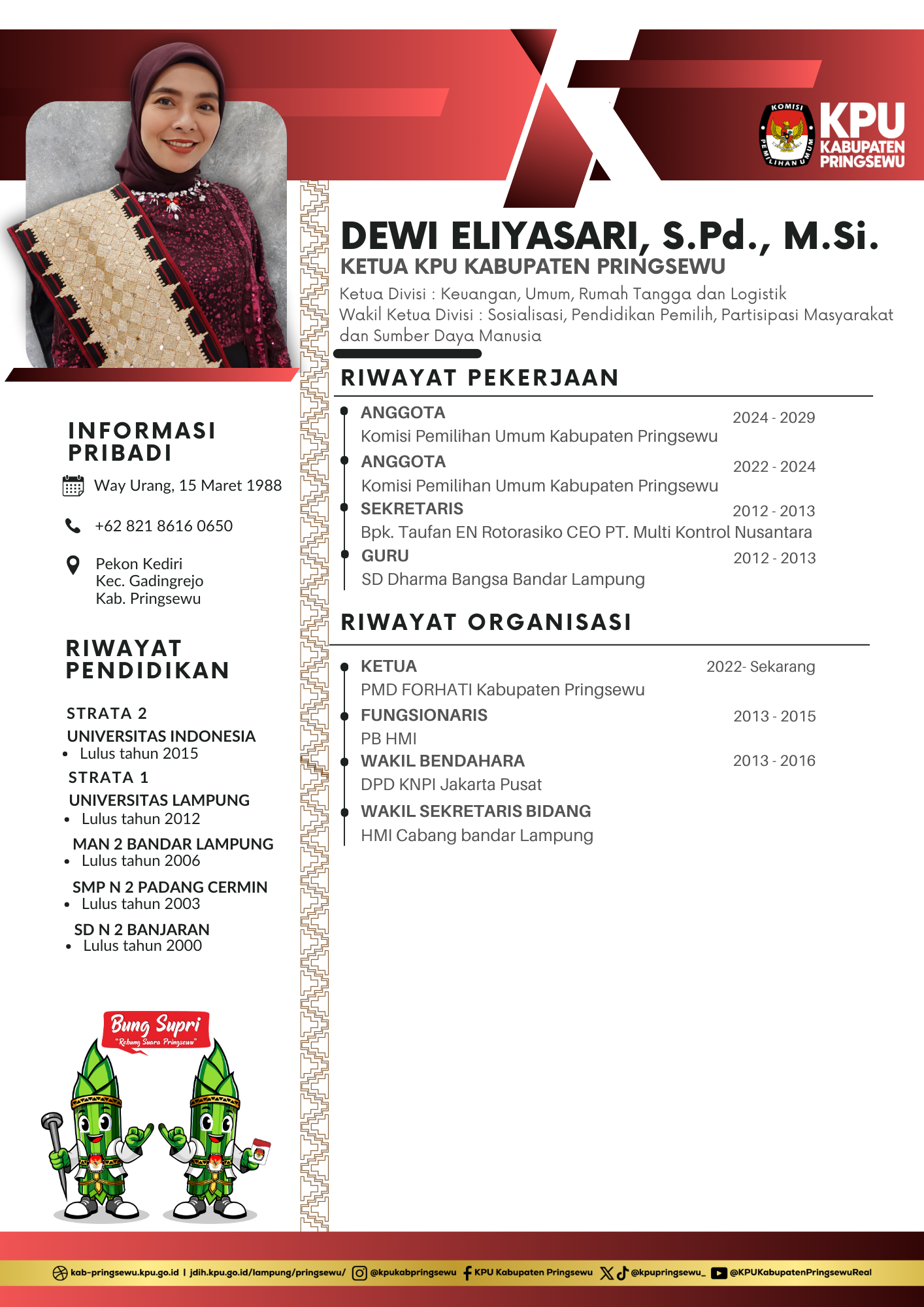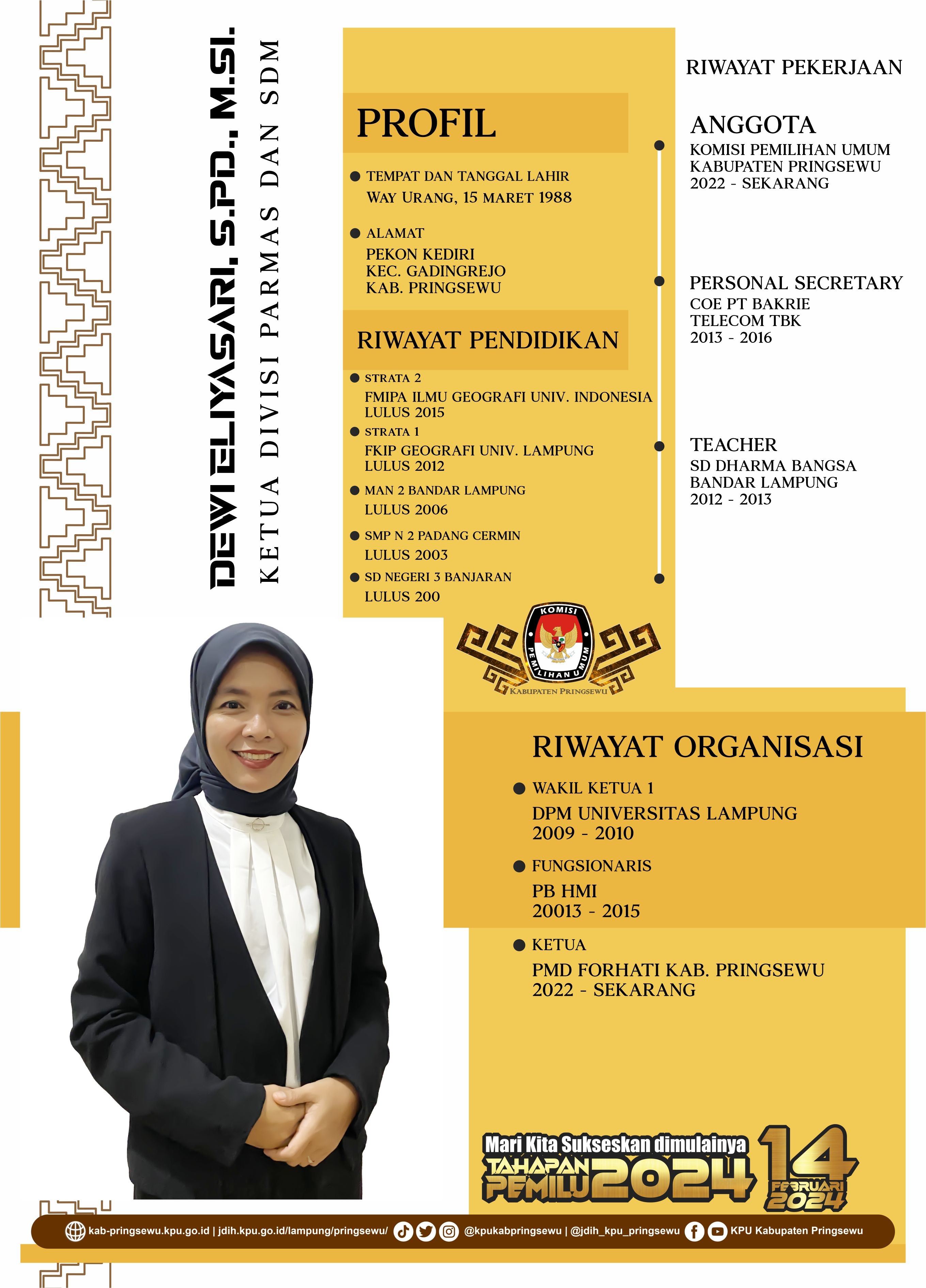 1. DEWI ELIYASARI,S.Pd.,M.Si ( Ketua KPU Kabupaten Pringsewu )